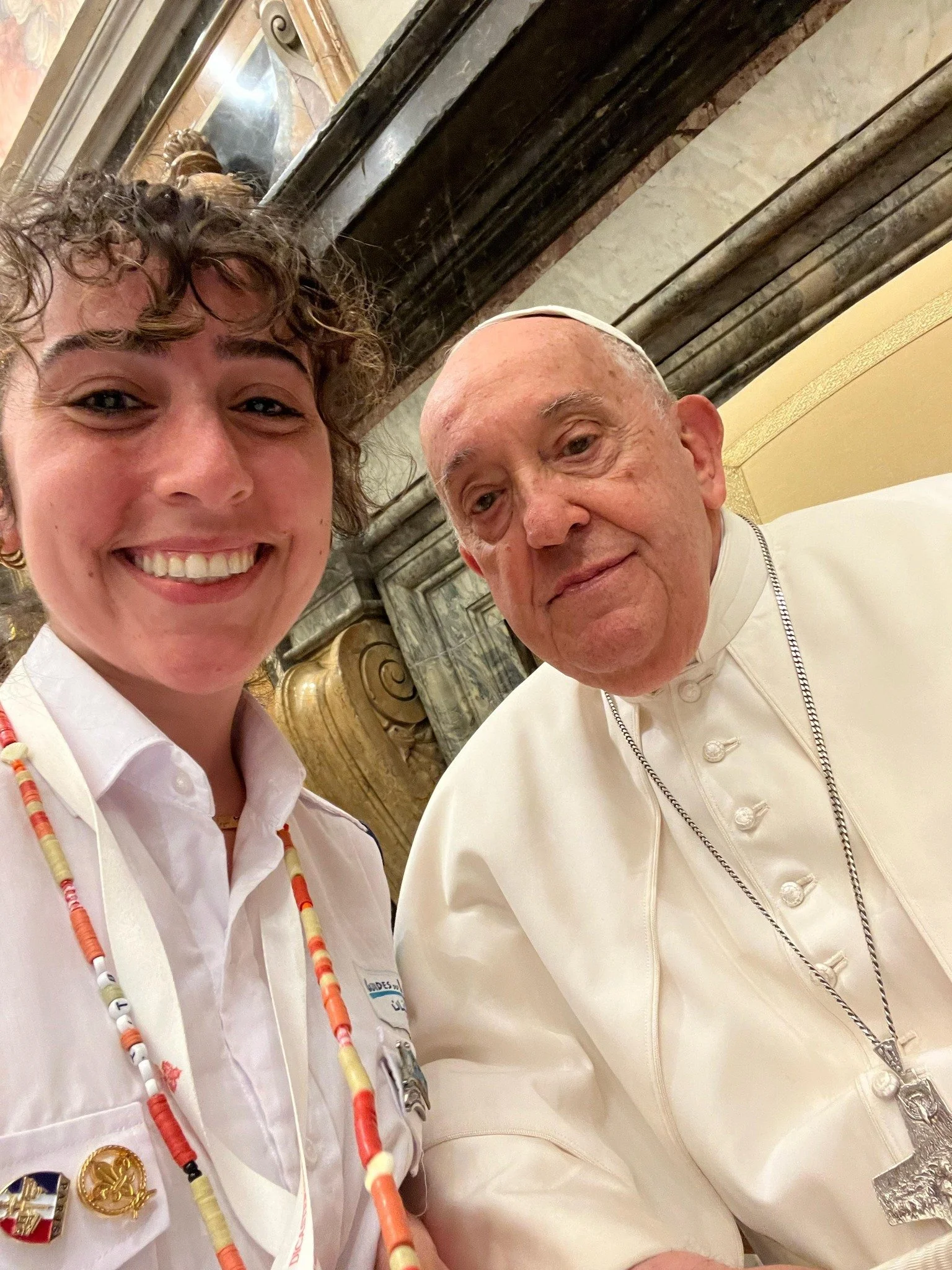وتروي "إحدى الذكريات الأجمل من رحلة لشبونة كانت عندما نمنا تحت النجوم بانتظار اليوم التالي للقاء البابا فرنسيس. خلال هذا الأسبوع لمسنا كيف يعيش البابا رسالة المحبّة والتعايش والانسجام مع المؤمنين من مختلف الديانات. لقد تأثّرت بطريقة تجسيده للقيم المسيحيّة بسُبل عصريّة شبابيّة".