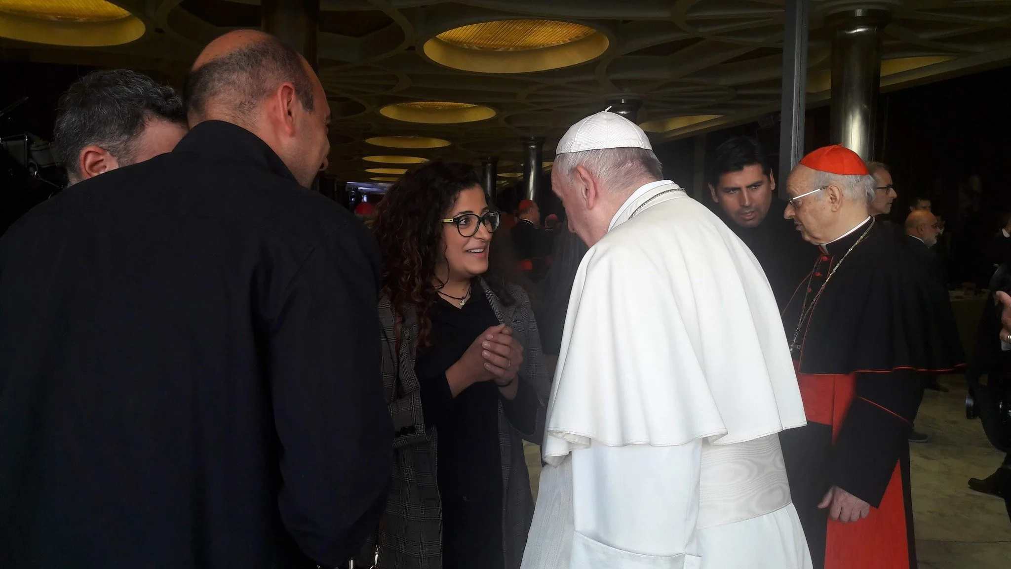 وأضافت "المرّة الثانية كانت خلال أيّام سينودس الشبيبة في العام 2019. لم أشارك فيها وإنّما انتظرت البابا كما سائر الناس أمام باب القاعة المخصّصة للسينودس. هذا وطلبت منه إمكانيّة تسجيل رسالة فيديو إلى الشبيبة في لبنان فكان متجاوبًا جدًّا. لكن ولأسباب تقنيّة اضطررنا أن نعيد التسجيل مع قداسته ثلاث مرّات. والملفت كان طول أناة البابا وابتسامته الّتي لم تفارق وجهه، فالموقف كان مؤثّرًا جدًّا".