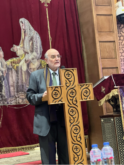 الأمين العام لمجلس كنائس الشرق الأوسط البروفسور ميشال عبس يلقي كلمة في صلاة اسبوع الوحدة في كنيسة مار جرجس والسامرية للأقباط الأرثوذكس بشبرا الخيمة