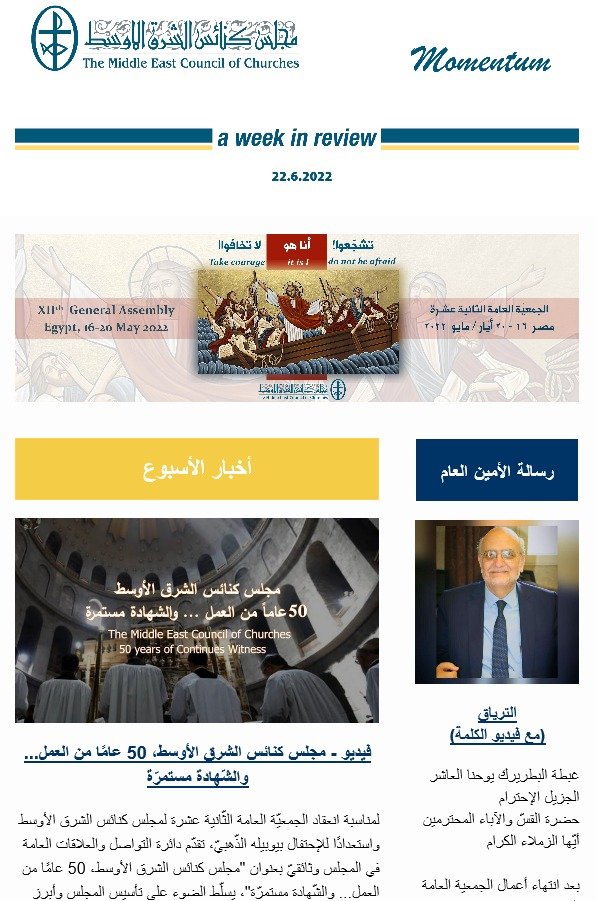 مومنتوم أسبوعيّة إلكترونيّة من مجلس كنائس الشرق الأوسط