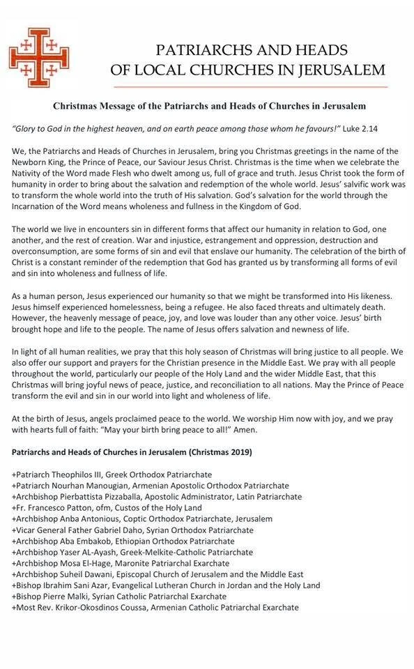 Christmas Message of the Patriarchs and Heads of Churches in Jerusalem Dec 25 Written By Communication & Public Relations Dpt Communication & Public Relations Dpt