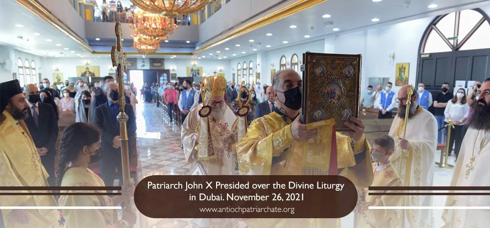 On Friday morning, November 26, 2021, His Beatitude Patriarch John X, the Greek Orthodox Patriarch of Antioch and all the East presided over the Divine Liturgy at the Church of Annunciation in Dubai. He was assisted in His service by His Grace Gregorios Khoury, Bishop of the Emirates and Patriarchal Vicar and a number of priests and deacons.