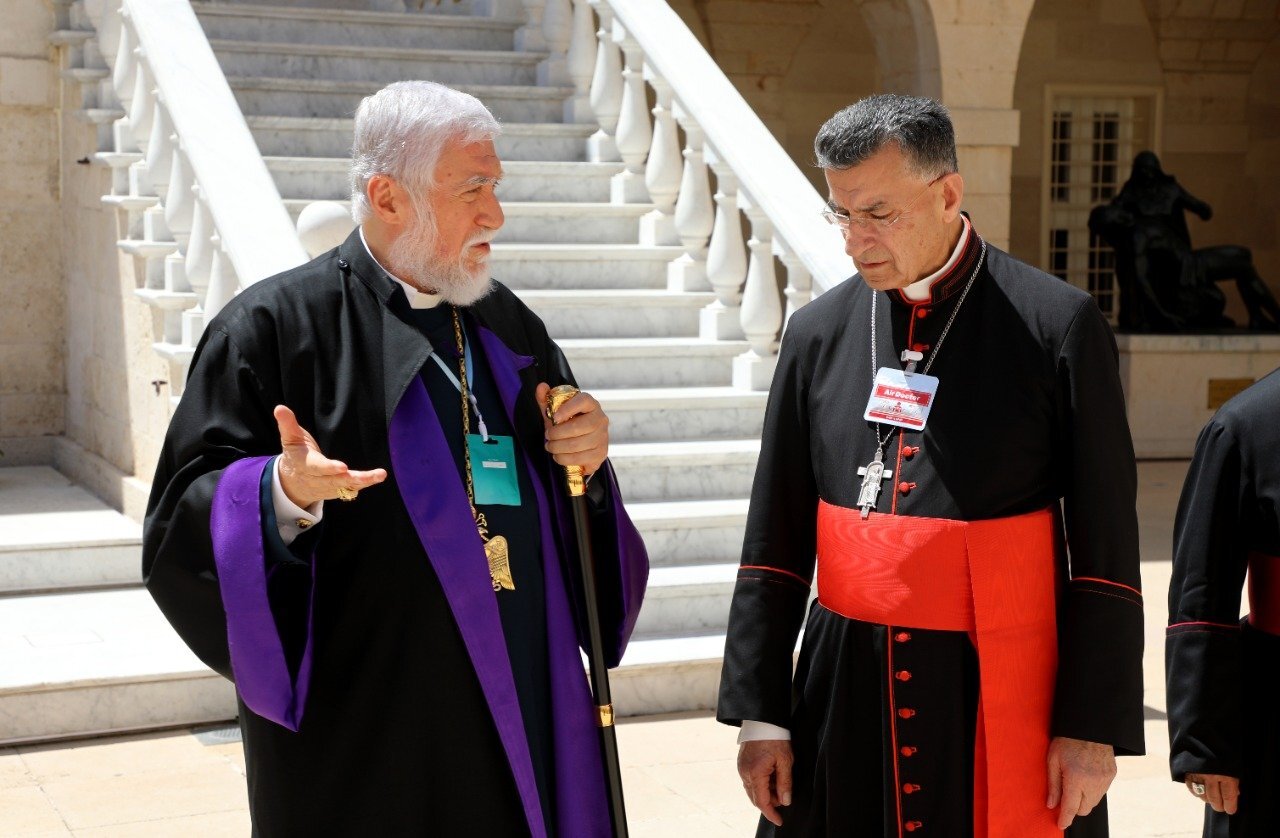 On May 1st, 2021,His Holiness Aram I, Catholicos of the Armenian Church, Holy See of Cilicia, accompanied by H.E. Archbishop Shahe Panossian, Prelate of the Armenian Prelacy of Lebanon visited Bkerki, on the invitation of His Beatitude Mar Bechara Boutros al-Rahi, Maronite Catholic Patriarch of Antioch. Present at the luncheon was the Vicar General of the Antioch Church Archbishop Paul Sayyah.