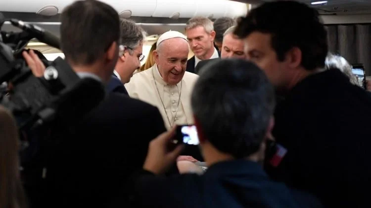 His Holiness Pope Francis conversing with journalists - archive photo (Vatican Media)