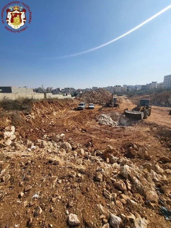 Subsequently, His Beatitude visited the very important housing project of the Greek Orthodox Patriarchate of Jerusalem, which was started and continues on land owned by the Patriarchate in Beit Jala, which will house 450 families in cooperation with the Jamaiye/ Community Council of Beit Jala and which offers the possibility of housing relief to the flock of Beit Jala and laid the foundation stone in the presence of the President of the Supreme Palestinian Ecclesiastical Committee Mr Ramzi Khouri and other representatives of the Palestinian Authority, the Hegoumen of Beit Jala Archimandrite Ignatios and the Priests Yusef, Pavlos and Elias.