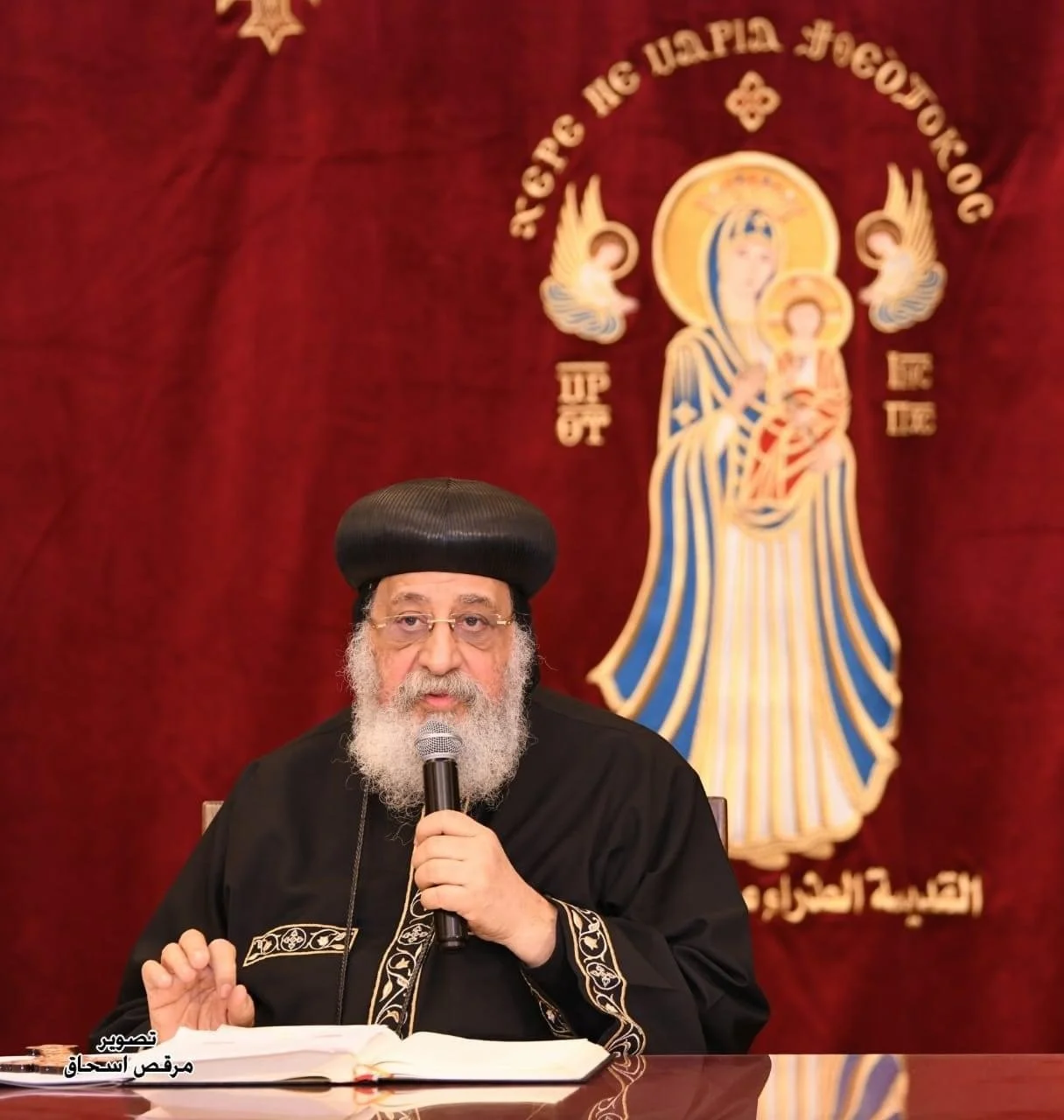 His Holiness Pope Tawadros II, Pope of Alexandria and Patriarch of the See of St. Mark, gave his weekly on Wednesday, March 2, 2022 at 7pm from the Church of St. Virgin Mary and St. Anba Bishoy at the St. Mark Cathedral in Abbassia, Egypt, in the presence of a limited number of people, including both congregants and clergy. This was the first time for the Wednesday evening meeting to be held in the presence of a live audience since the onset of the Corona pandemic, since almost two years ago.