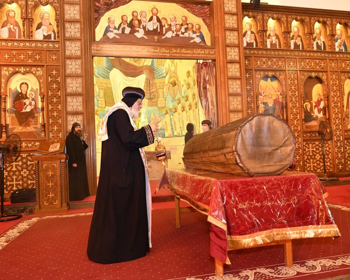 His Holiness Pope Tawadros II Beautifies the Relics of St. Bishoy at his Monastery in Wadi El-Natrun