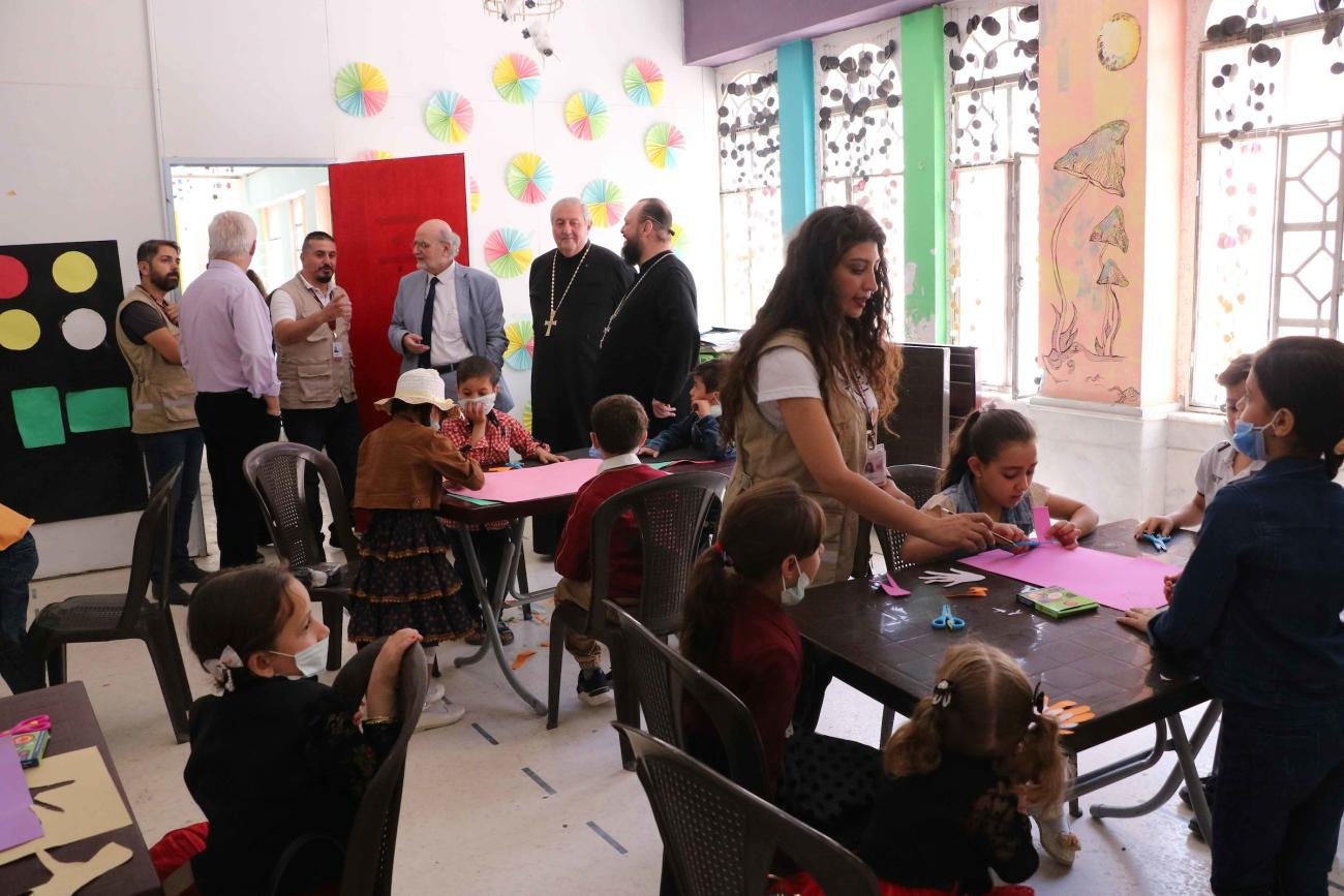 On the fourth day, the delegation headed to the city of Arbin in rural Damascus, and visited the Social Rehabilitation Center affiliated with the Department of Ecumenical Relations and Development at the Antiochian Orthodox Patriarchate. The delegation visited as well the St Georges Greek Orthodox Church and its affiliated school, which have been restored by the Greek Orthodox Patriarchate of Antioch and All the East.