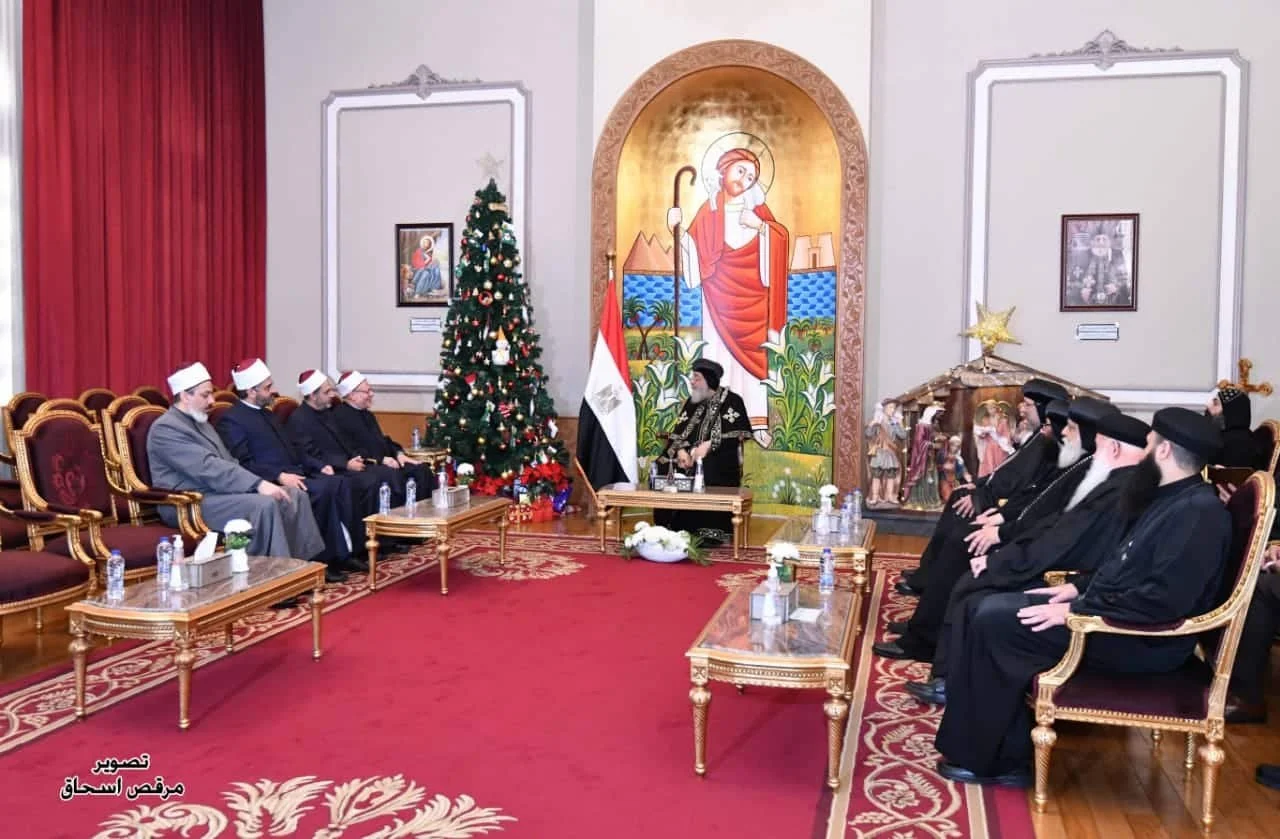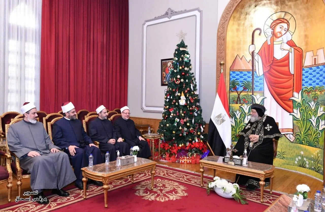 On Wednesday 4 January 2023, at the Papal Residence in Cairo, Egypt, His Holiness Pope Tawadros II, Pope of Alexandria and Patriarch of the See of St. Mark, received Dr. Shawki Allam, Mufti of Egypt, accompanied by a delegation from the Egypt’s Dar Al Ifta, and this is to congratulate on Christmas.