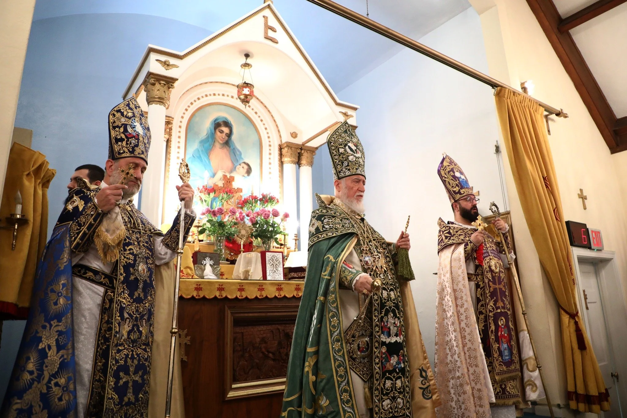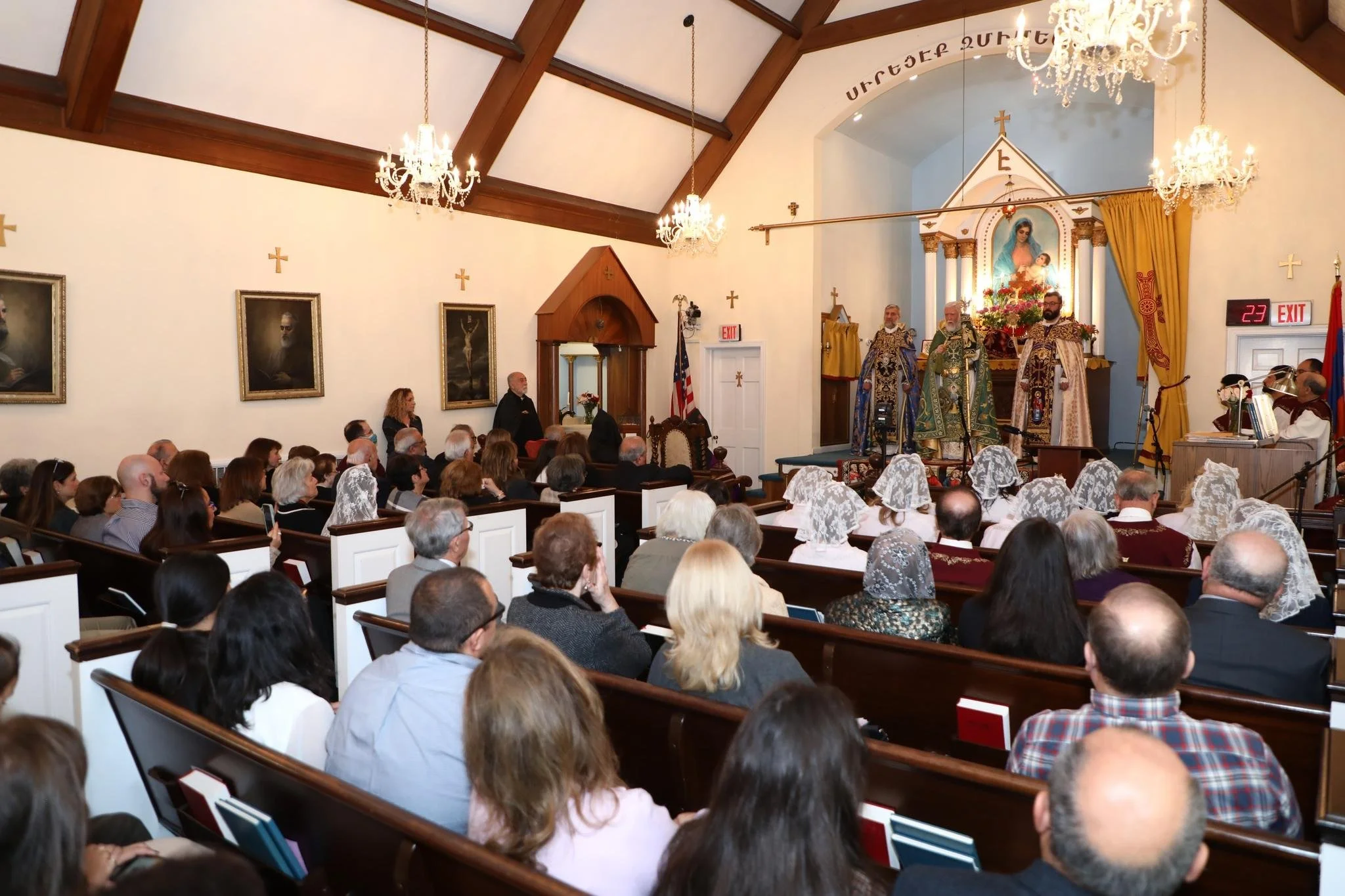 On Sunday, November 12th, 2023, His Holiness Catholicos Aram I, Catholicos of the Armenian Church, Holy See of Cilicia presided over the Divine Liturgy and delivered his pontifical address at Sourp Khatch (Holy Cross) Church in Washington, DC. He was assisted by His Eminence Archbishop Papken Tcharian and His Grace Bishop Torkom Donoyan.