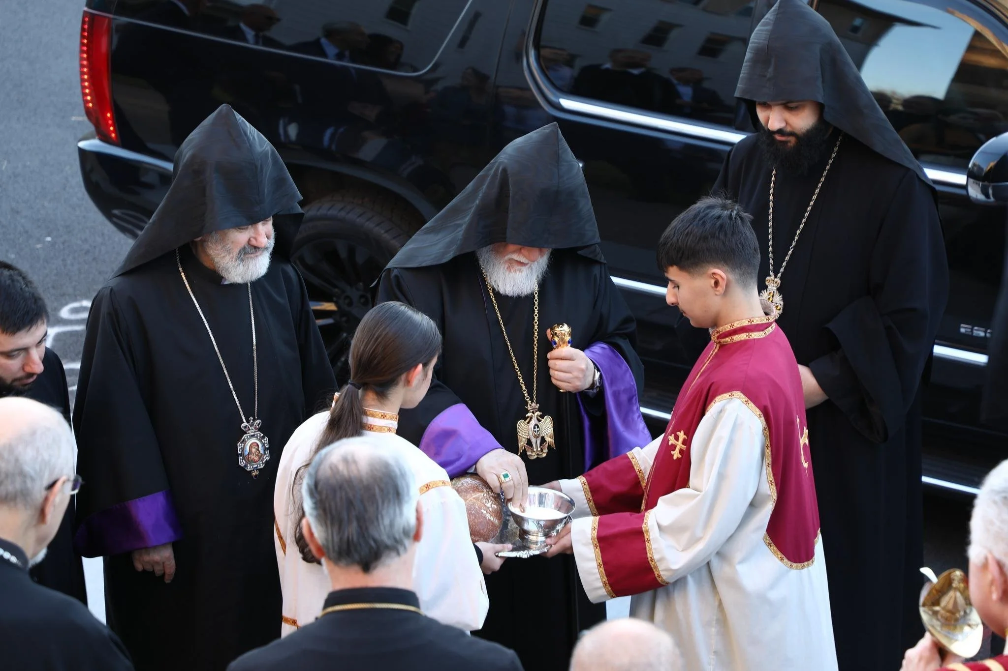 His Holiness Catholicos Aram I and his Pontifical delegation were warmly welcomed at the entrance of Sourp Sdepanos Church (St. Stephen) by Parish Priests, members of the Board of Trustees, representatives of Diocesan Councils, and the Faithful.