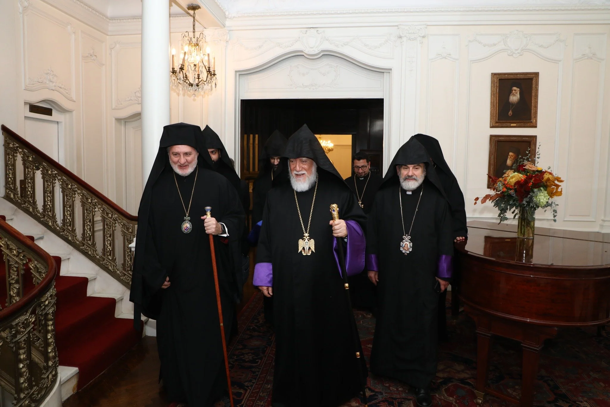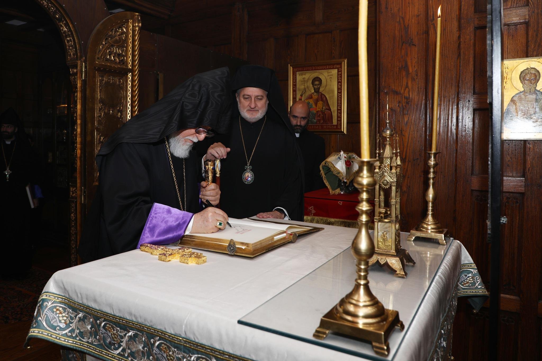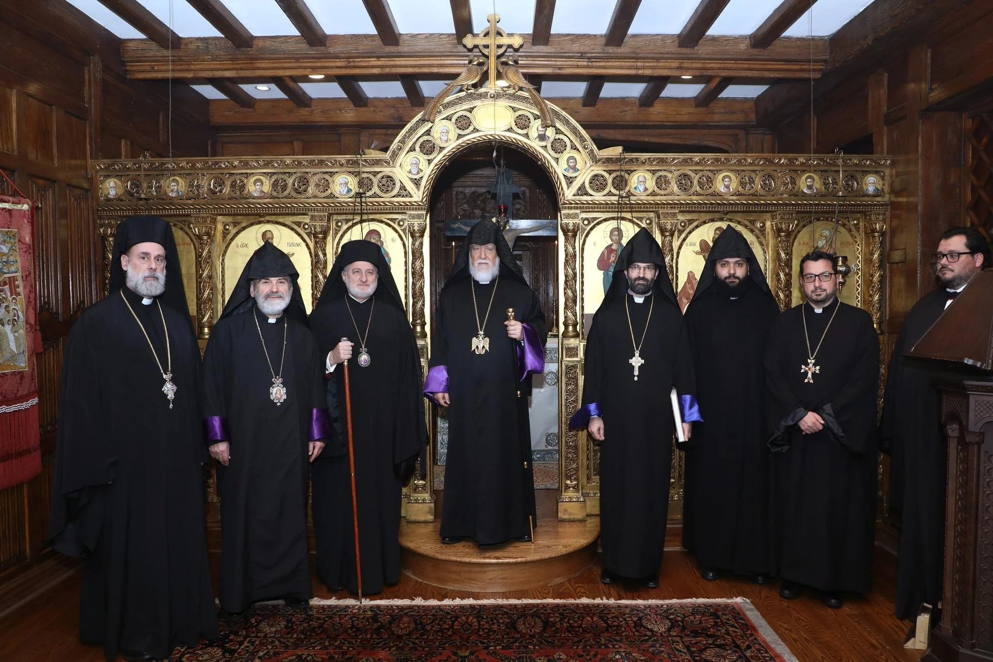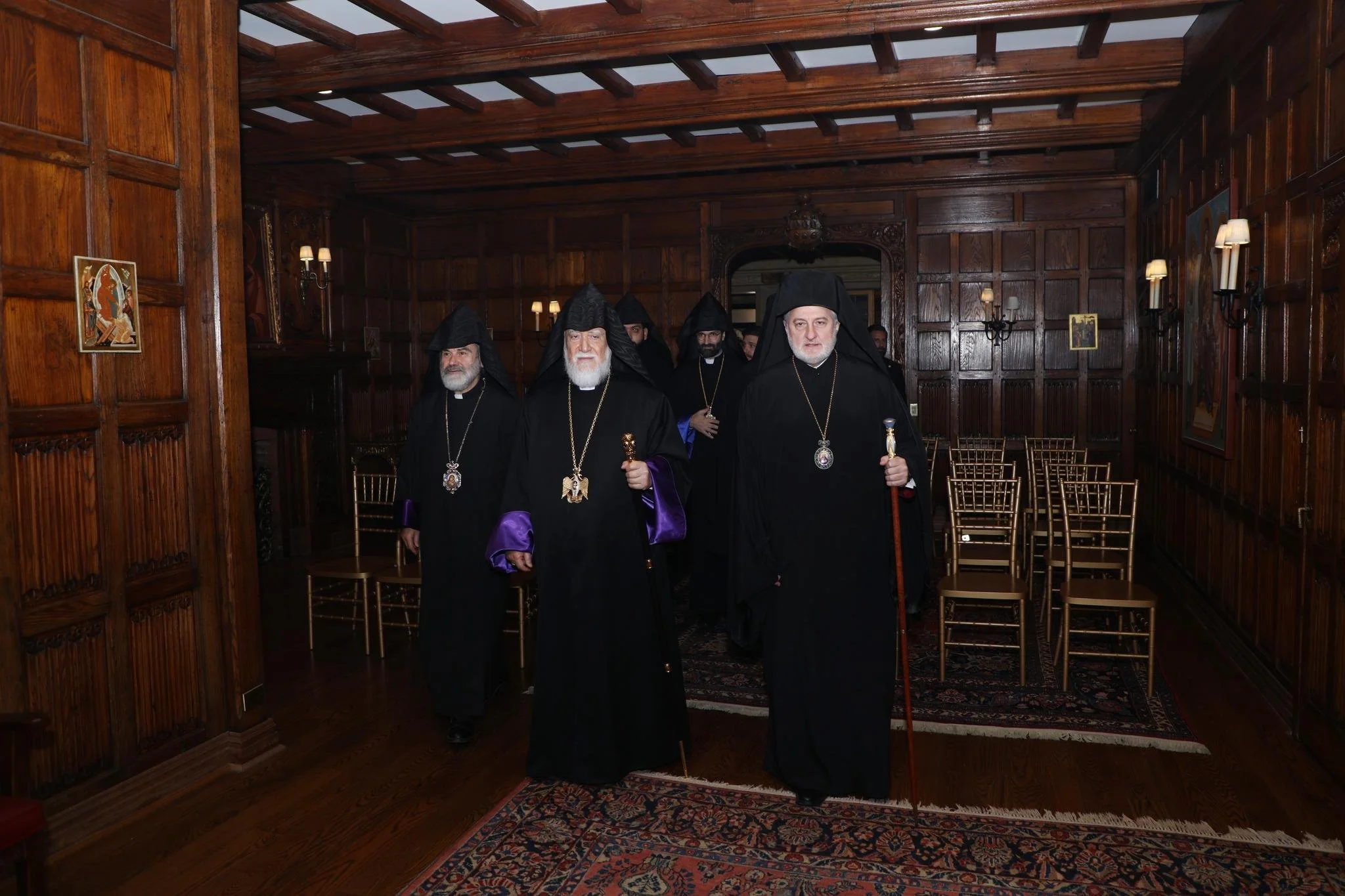 Notably, His Holiness Catholicos Aram I was accompanied by His Eminence Archbishop Anoushavan Tanielian, Prelate of the Eastern Prelacy; V. Rev. Fr. Sahag Yemishian, Vicar General of the Eastern Prelacy; V. Rev. Fr. Hovagim Panjarjian, the director of the Communication and Information Department of the Catholicosate of Cilicia; V. Rev. Fr. Sarkis Aprahamian, the director of the Middle East section of the Ecumenical Relations Department and Rev. Fr. Nareg Terterian, Pastor of St. Sarkis Church in New York.