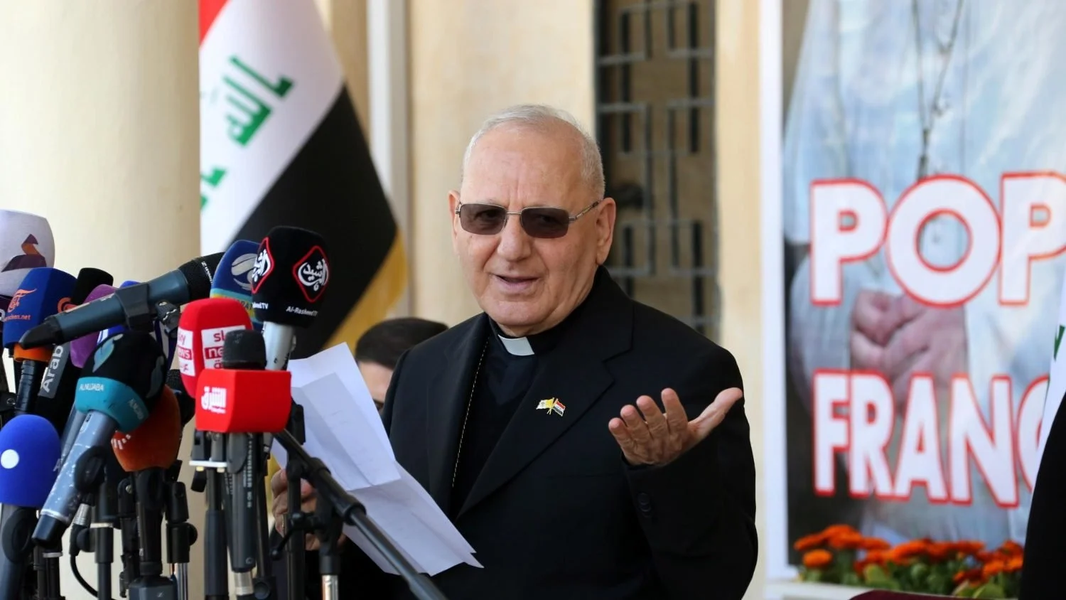 His Beatitude Patriarch Cardinal Louis Raphaël Sako speaks to the media in 2021 (ANSA)