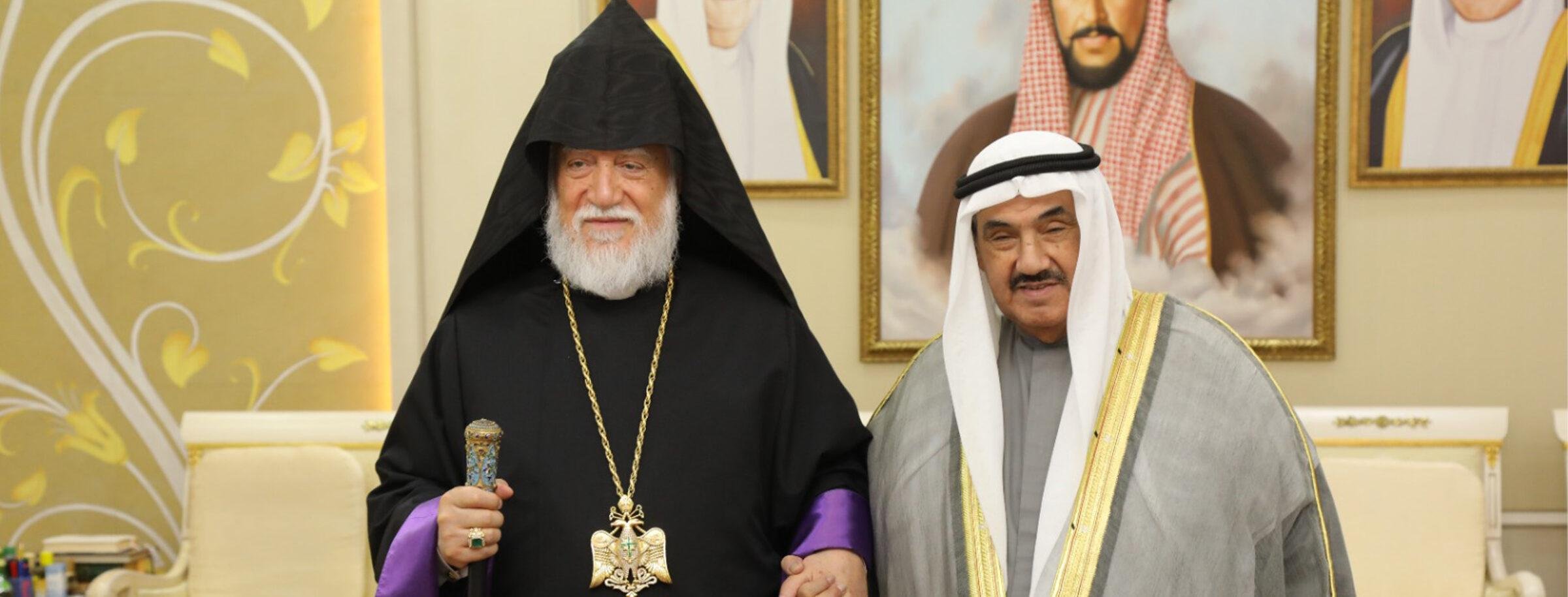 During his Pontifical visit to Kuwait, His Holiness Catholicos Aram I, Catholicos of the Armenian Church, Holy See of Cilicia, and the former Prime Minister of Kuwait Sheikh Nasser Al-Mohammad Al-Ahmad Al-Mobarak Al-Sabah had an amicable meeting.