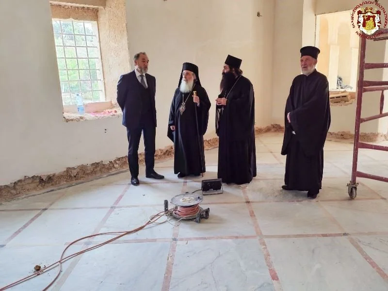 On Saturday, November 24 / December 7, 2024, His Beatitude Patriarch Kyrios Kyrios Theophilos III, the Greek Orthodox Patriarch of the Holy City of Jerusalem, visited the Holy Monastery of the Cross, accompanied by the Elder Chief-Secretary His Eminence Archbishop Aristarchos of Constantina, the Consul General of Greece in Jerusalem Mr Dimitrios Angelosopoulos, the professor Mr Phaedon Kydoniatis and Archimandrite Bartholomew. They were received by the Hegoumen of the Holy Monastery Archimandrite Christodoulos and observed the tree planting work of the estate around the Monastery and the infrastructure work of the future to operate in this Monastery Centre for Special Studies.