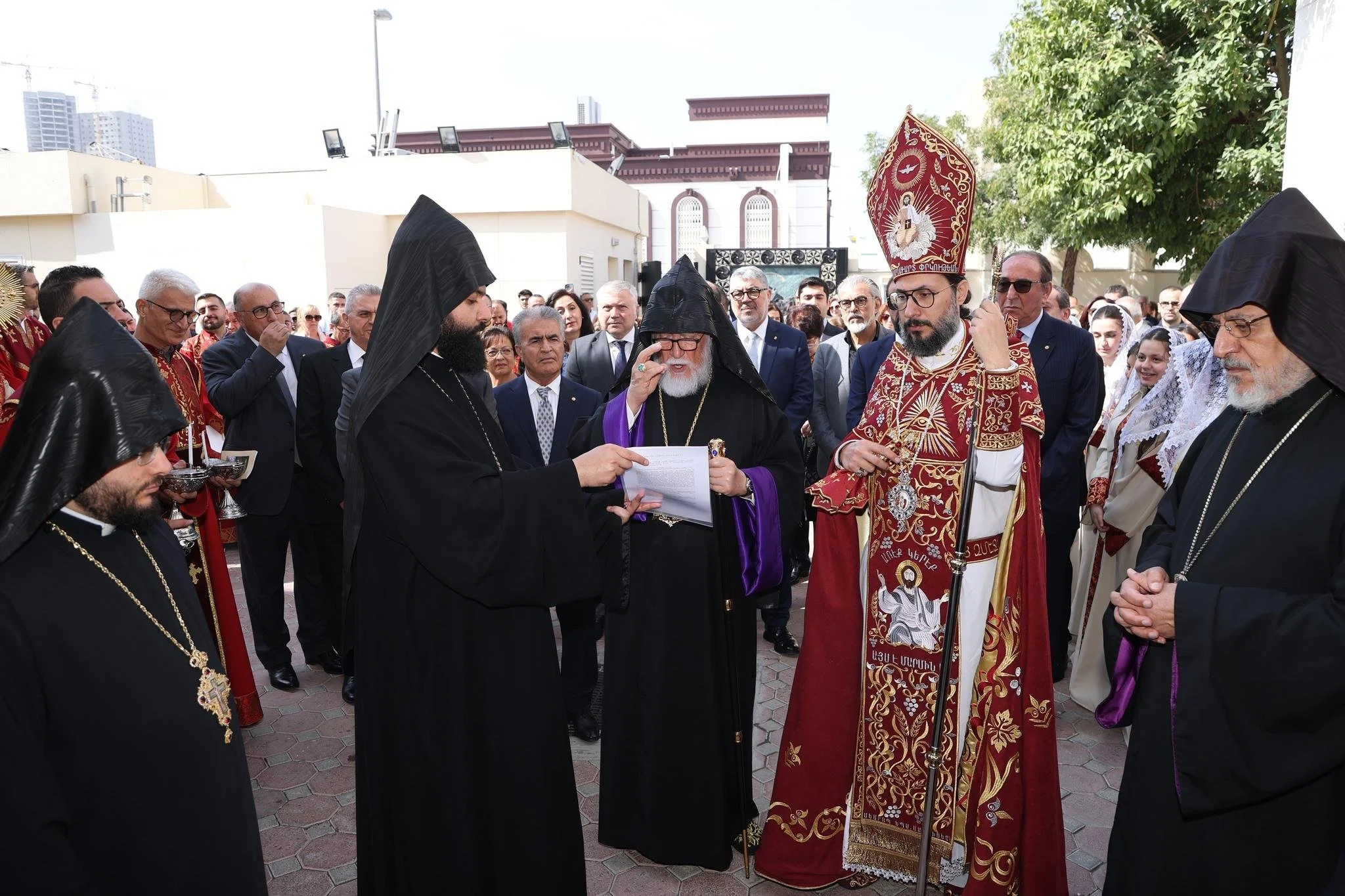 Before inviting His Holiness Catholicos Aram I to address the faithful, the Prelate extended a warm welcome, acknowledging the significance of His Holiness's visit and reflecting on the consecration of the church by His Holiness, 25 years ago. He emphasized that this blessed visit would serve as a catalyst for the revitalization of the community, expressing filial gratitude and extending wishes for a long and healthy reign to Catholicos Aram I. His Grace Bishop Mesrob Sarkissian also conveyed greetings to Arch. Oshagan, the first prelate of the UAE and Qatar, as well as to the servants and volunteers of the Church.