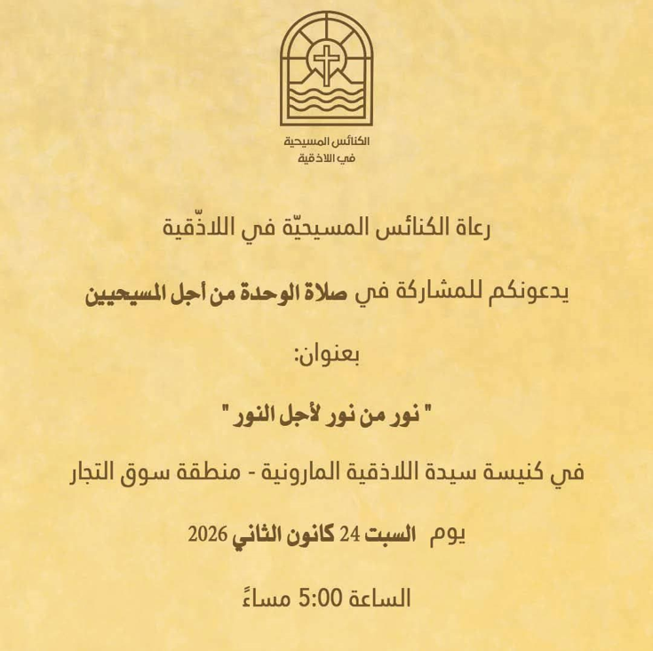 Prayer for Christian Unity at Our Lady of Latakia Maronite Church - Souk al-Tujjar Region, Syria Jan 21 Written By Communication & PR Department Communication Arabic Communication & PR Department Communication