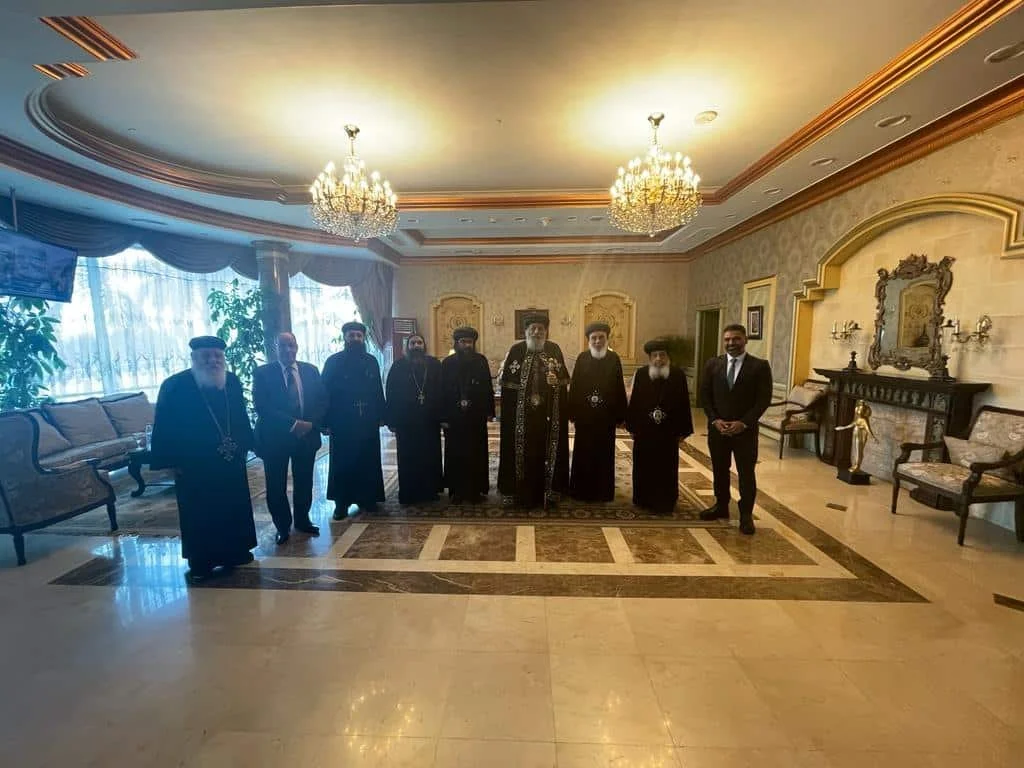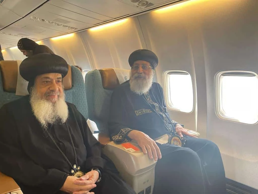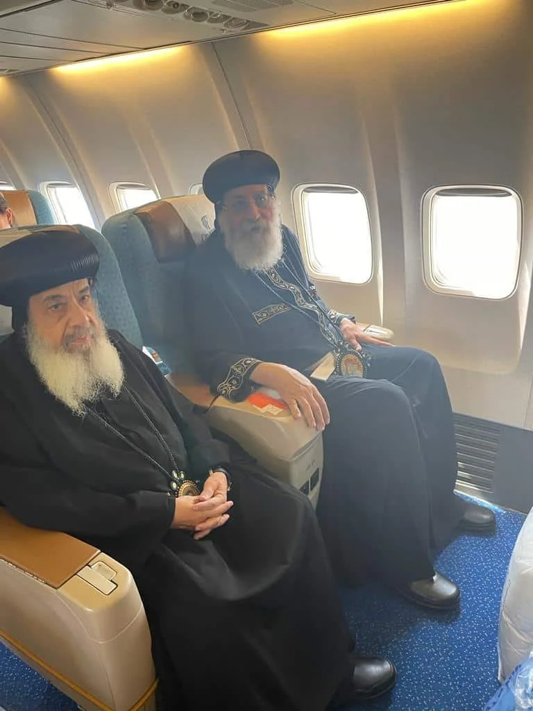 His Holiness was received at Cairo International Airport by Mr. Mohamed Abbas, Minister of Civil Aviation, Mr. Magdy Ishak, Chairman of the Board of Directors of the port, and airport leaders.