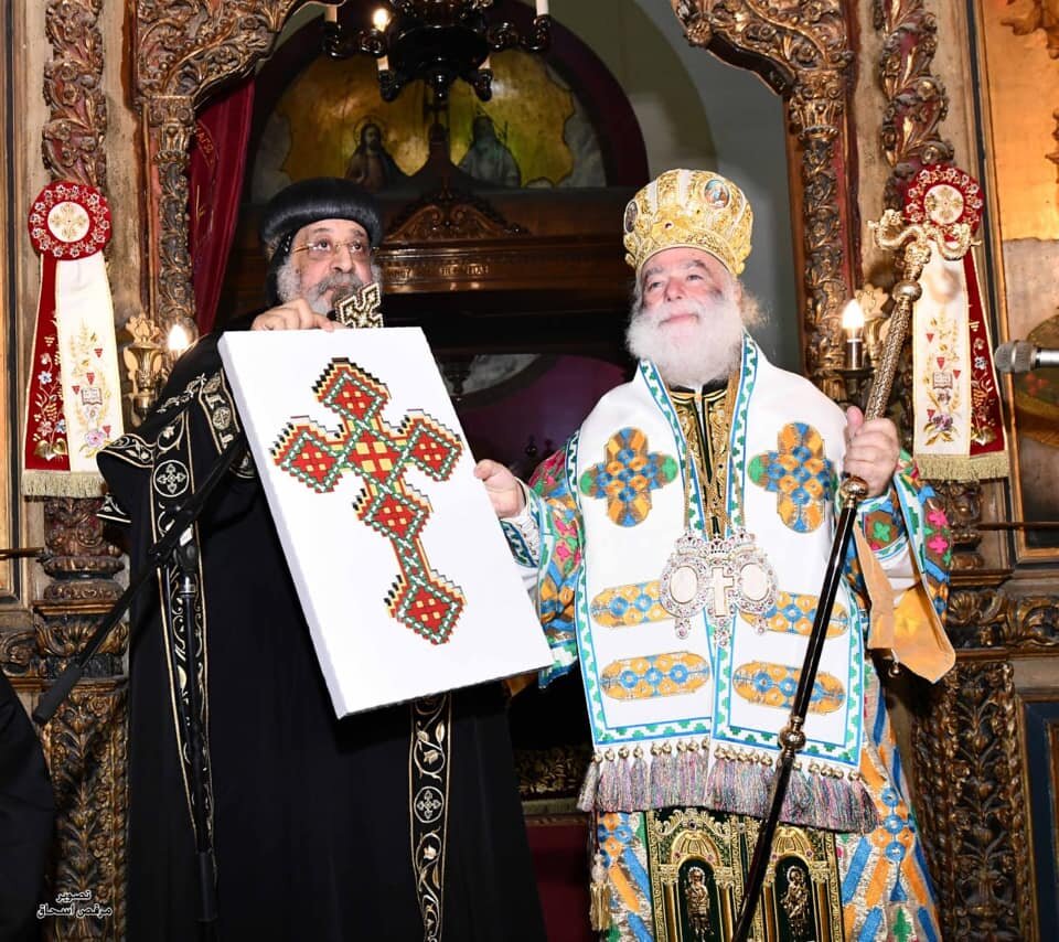 أشكر قداستكم كثيرًا وأشكر جميع الأباء المطارنة والأساقفة الحضور معنا كما أشكر السادة السفراء الحضور معنا أيضًا وأشكر الشعب الكريم ويديم أفراح الميلاد في حياتنا ويكون على الدوام سنة نمجد فيها السيد المسيح وأود أن أقدم لكم تذكارًا عن صليب اليوتا هو صليب من الفن القبطي من عمل أبنائنا وهذا الصليب يشرح كلمة يوتا وهي الحرف العاشر من اللغة القبطية وهو أول حرف في كلمة يسوع "أيسوس" وهذا الصليب فن قبطي يعمل به عدد من الرهبان في الاديرة ونقدم هذا الصليب بكل الحب