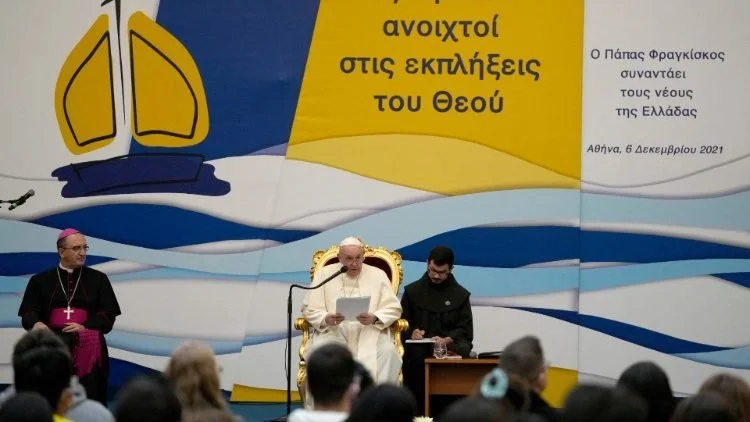 إختتم قداسة البابا فرنسيس زيارته إلى اليونان صباح يوم الاثنين 5 كانون الأوّل/ ديسمبر 2021، بلقاء مع الشباب في مدرسة القدّيس ديونيسيوس للراهبات الأورسوليّات في ماروسي، في أثينا. وتخلّلت اللّقاء كلمة للمسؤول عن رعويّة الشّباب في اليونان إضافة إلى شهادات لشباب.