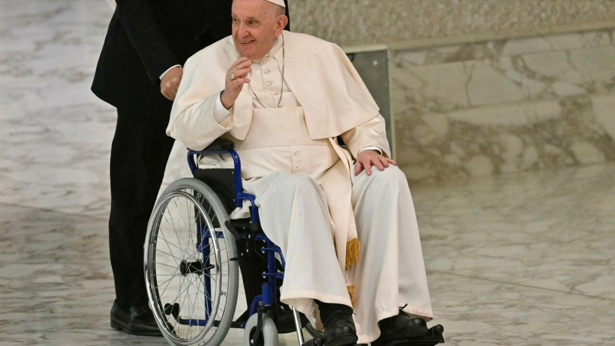وشوهد البابا البالغ 85 عامًا والّذي يعاني من ألم في ركبته، للمرّة الأولى على كرسي متحرّك أثناء حدث عام الأسبوع الماضي.