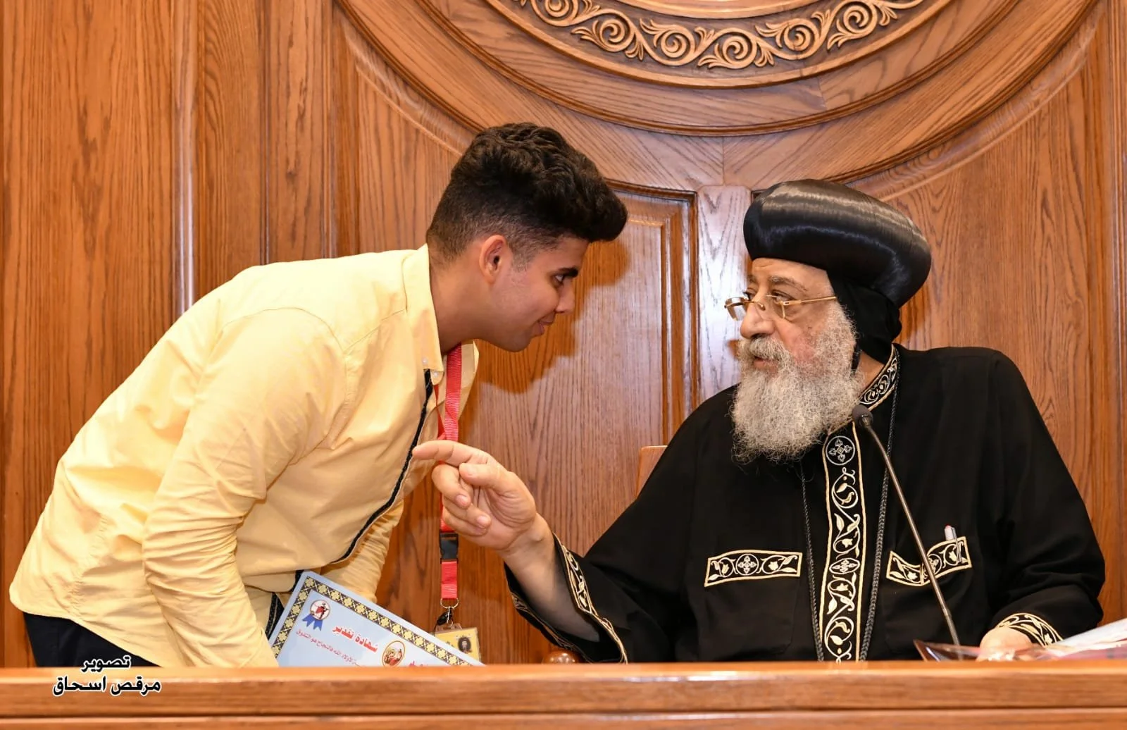 وعبّر الحضور عن فرحتهم بلقاء قداسة البابا تواضروس الثاني وقدّمت إحدى الفائزات (من إيبارشيّة البلينا بسوهاج) باقة ورد لقداسته وقالت له: "كلّ أولادك في إيبارشية البلينا يرسلون لك محبة مع هذه الورود" كما قدمت طفلة في المرحلة الابتدائية عمل فني يدوي هدية لقداسة البابا، وطلب الشاب "أندرو" وهو في المرحلة الثانوية من إيبارشية جرجا، توقيع قداسة البابا على بحث قام بإعداده بعنوان “لآلئ نفيسة لباباوات الكنيسة” وشجعه قداسته بعد أن تصفح محتوى البحث باهتمام ووقع عليه، بعد أن كتب عبارة "برافو يا أندرو".