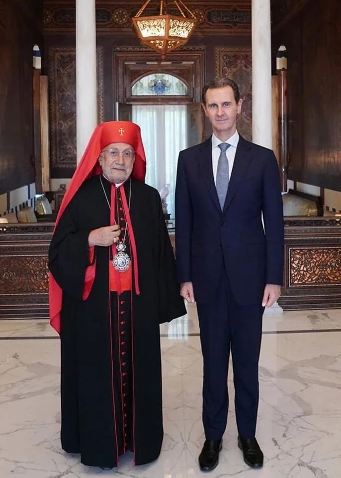 صباح يوم الخميس 24 آب/ أغسطس 2023 غبطة البطريرك روفائيل بيدروس الحادي والعشرون ميناسيان، كاثوليكوس بطريرك بيت كيليكيا للأرمن الكاثوليك، ورئيس مجلس كنائس الشرق الأوسط عن العائلة الكاثوليكيّة، بزيارة سيادة الرئيس بشار حافظ الأسد، رئيس الجمهوريّة العربيّة السوريّة وذلك في القصر الجمهوري بالعاصمة دمشق. رافق غبطة البطريرك ميناسيان في زيارته كلّ من سيادة الأساقفة: المطران جورج أسادوريان المعاون البطريركي للأرمن الكاثوليك، المطران بطرس مرياتي رئيس أساقفة أبرشيّة حلب، المطران جوزيف أرناؤوطي أسقف أبرشيّة دمشق، المطران أنترانيك أيفازيان أسقف أبرشيّة الجزيرة والفرات بالإضافة إلى حضور مسؤول العلاقات العامة في البطريركيّة شربل بسطوري.