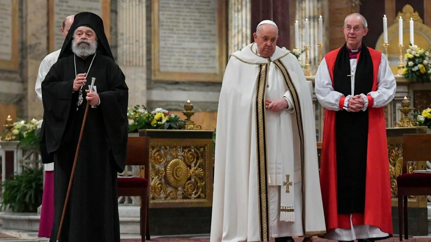 تابع الحبر الأعظم يقول ولهذا السبب نحن هنا الليلة من بلدان وثقافات وتقاليد مختلفة. أنا ممتن لصاحب السيادة جوستين ويلبي، رئيس أساقفة كانتربري، وللمتروبوليت بوليكاربوس، ممثل البطريركية المسكونية، ولكم جميعًا، الذين تجعلون العديد من الجماعات المسيحية حاضرة. وأوجه تحية خاصة إلى أعضاء اللجنة الدولية المختلطة للحوار اللاهوتي بين الكنيسة الكاثوليكية والكنائس الأرثوذكسية الشرقية، الذين يحتفلون بالذكرى العشرين لمسيرتهم، وإلى الأساقفة الكاثوليك والأنغليكان الذين يشاركون في لقاء اللجنة الدولية للوحدة والرسالة. من الجميل أن نتمكن اليوم مع أخي، رئيس الأساقفة جوستين، من أن نمنح هؤلاء الأساقفة المهمّة لكي يواصلوا الشهادة للوحدة التي يريدها الله لكنيسته في مناطقهم، ويمضوا قدمًا معًا "لكي ينشروا رحمة الله وسلامه في عالم يحتاج لهما"…
