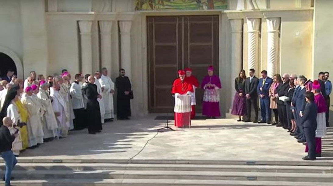 كما نعبّر عن ترحيبنا بقداسة البابا فرنسيس، الّذي أرسل نيافة الكاردينال بييترو بارولين كمبعوث بابويّ ممثّلًا له لتدشين هذه الكنيسة، والّتي ستغدو من أبرز المعالم الدّينيّة في المنطقة. نشكركم يا صاحب النّيافة على وجودكم نيابةً عن قداسة البابا فرنسيس، ونأمل أن تنقلوا تحيّاتنا وشكرنا لقداسته، الّذي صلّى معنا في هذه الكنيسة عندما كانت لا تزال قيد الإنشاء.