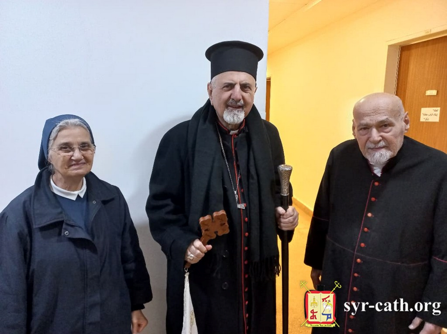 كما التقى غبطته الأخوات راهبات الصليب اللواتي يخدمنَ في دار المسيح الملك، فأثنى على خدمتهنَّ، وتبادل معهنَّ تهاني العيد.