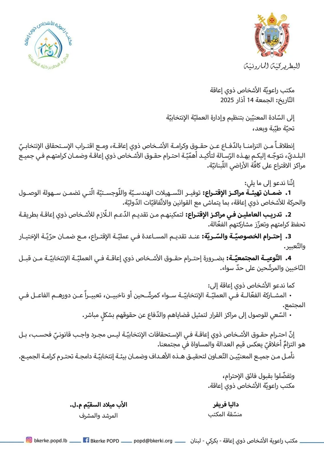 بيان صادر عن مكتب راعويّة الأشخاص ذوي إعاقة في الدّائرة البطريركيّة المارونيّة في بكركي Mar 15 Written By Communication & PR Department Communication Communication & PR Department Communication