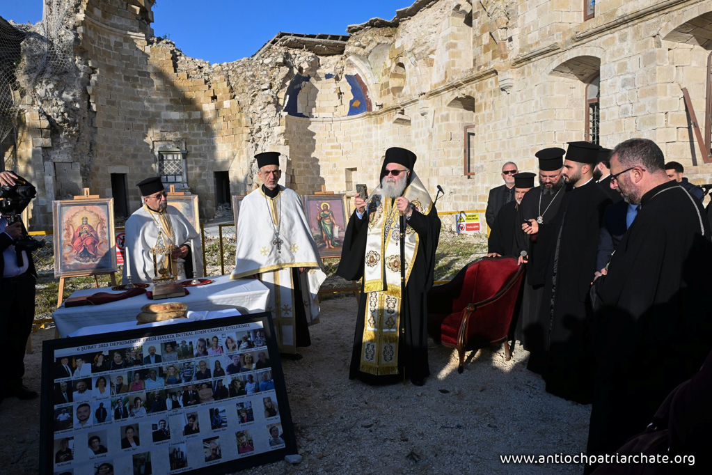 أقام غبطته صلاة الشكر وفي نهايتها أقام صلاة النياحة لراحة نفوس أبناء الرعيّة الذين انتقلوا إلى الأخدار السماوية إثر الزلزال المدمر.