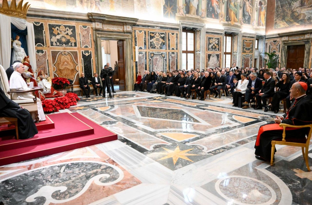 قداسة البابا لاوُن الرابع عشر يستقبل منظمي الحفل الموسيقي لمناسبة عيد الميلاد والفنانين المشاركين فيه (@VATICAN MEDIA)
