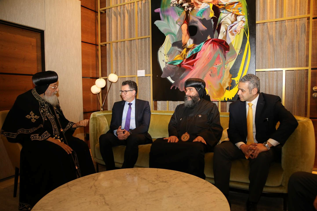 كان في استقبال قداسته السفير محمد نصر سفير مصر في النمسا ومندوبها الدائم لدى الأمم المتحدة والمنظمات الدولبة في ڤيينا، والقنصل المصري المستشار محمد البحيري.
