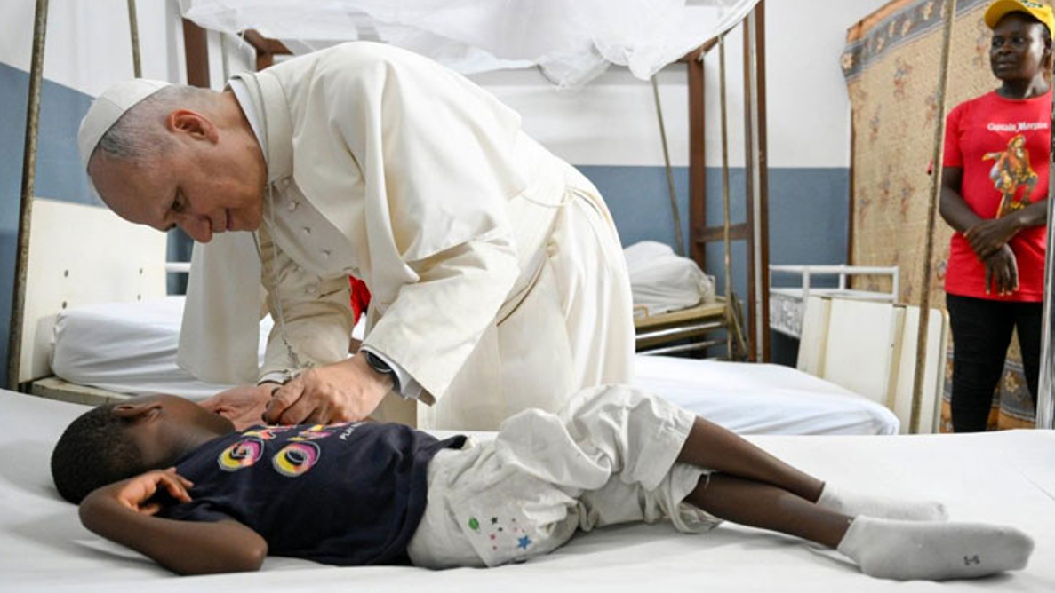فبعد القدّاس الإلهيّ الّذي ترأّسه في ملعب جابوما، قام بزيارة خاصّة إلى مستشفى "Saint Paul" الكاثوليكيّ في دوالا، وذلك كما أعلنت دار الصّحافة التّابعة للكرسيّ الرّسوليّ. وقد توقّف للصّلاة في كابلة المستشفى، ثم التقى في فناء المستشفى العاملين وبعض المرضى، وأمل أن تكون هذه الزّيارة علامة تعزية في حياتهم. وبعد تلاوة صلاة "الأبانا"، زار بعض المرضى في غرفهم لاسيّما الأطفال والمسنّين.